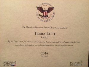 I could show evidence of over 500 hours – FIVE HUNDRED – that I volunteered for the League in 2016. Because we are a certifying organization with The President’s Volunteer Service Award program, I can tout yet another prestigious accomplishment on my road to wherever I’m headed as an author: Gold President’s Volunteer Service Award Winner.